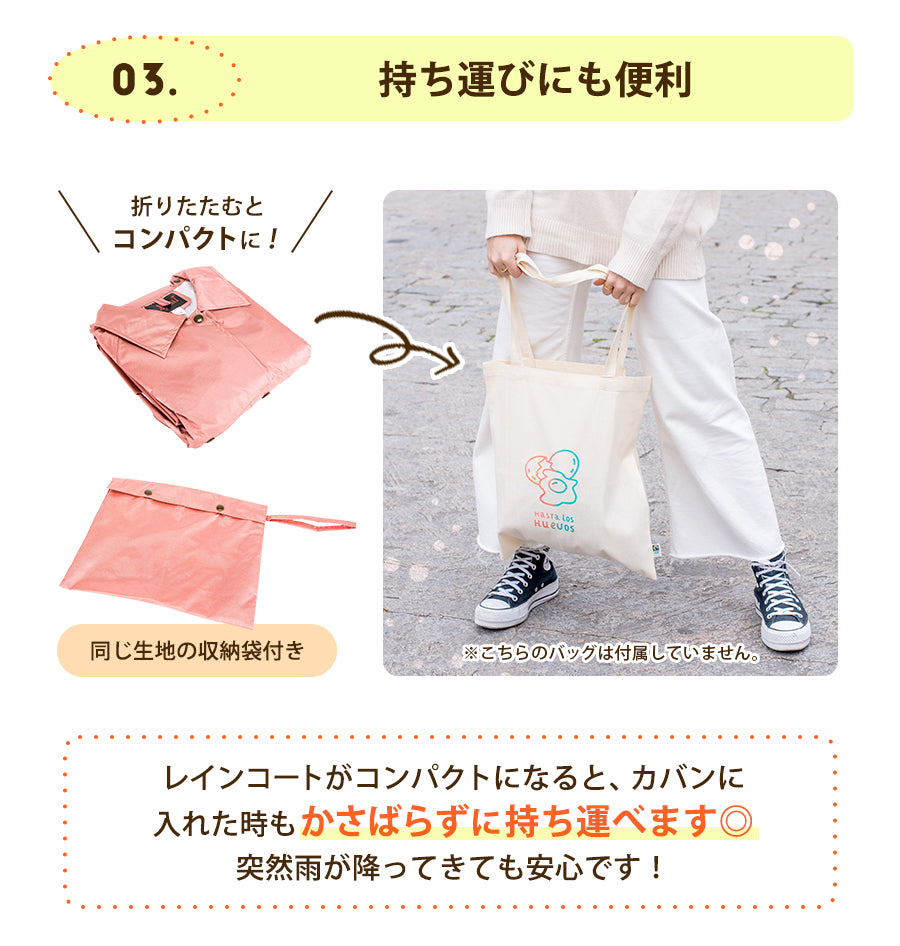 軽量素材なので毎日の自転車通勤にも最適なレインコートです。