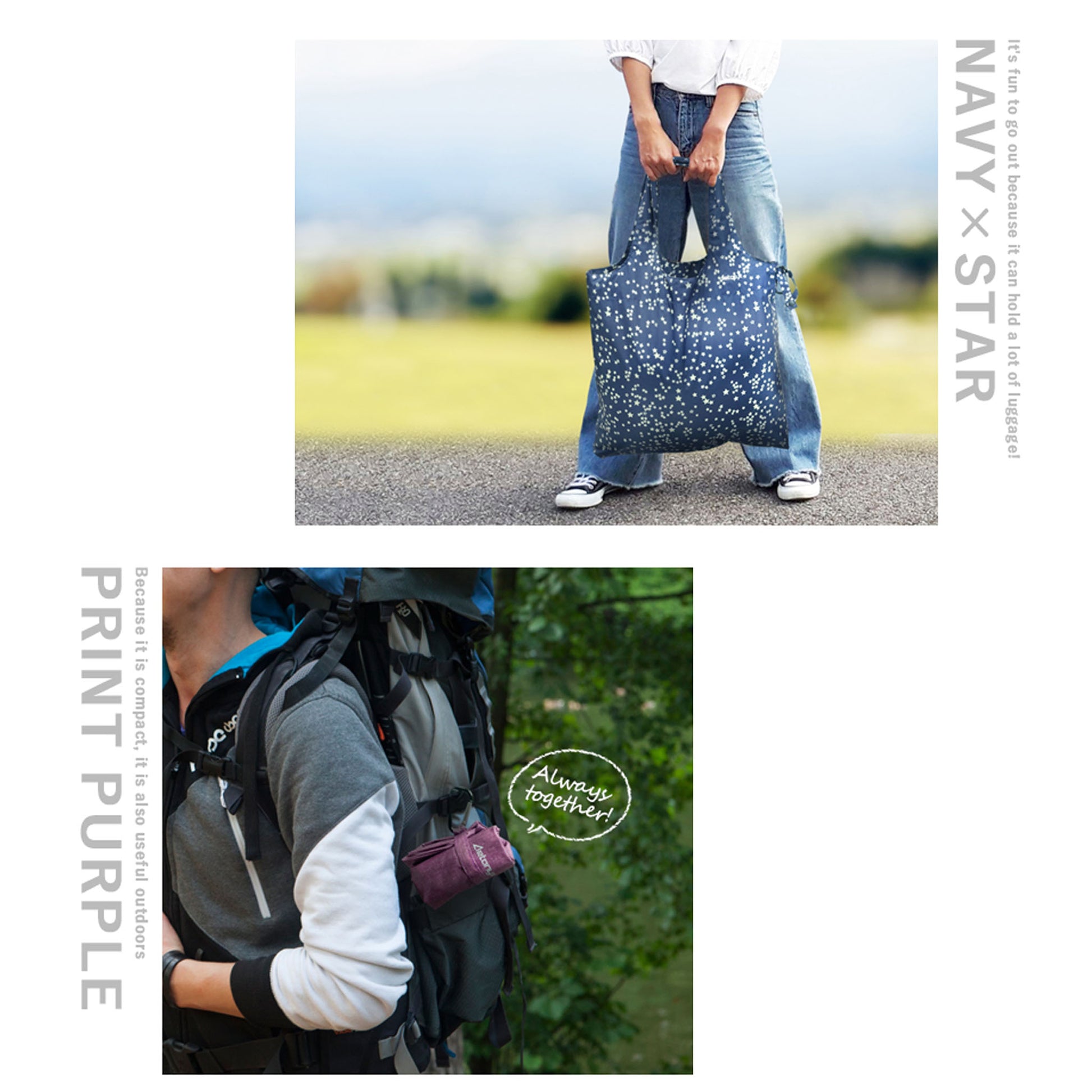 便利なカラビナが付きで、鞄やリュック、ベルトループなどに引っ掛けられてエコバッグの持ち忘れを防ぎます。