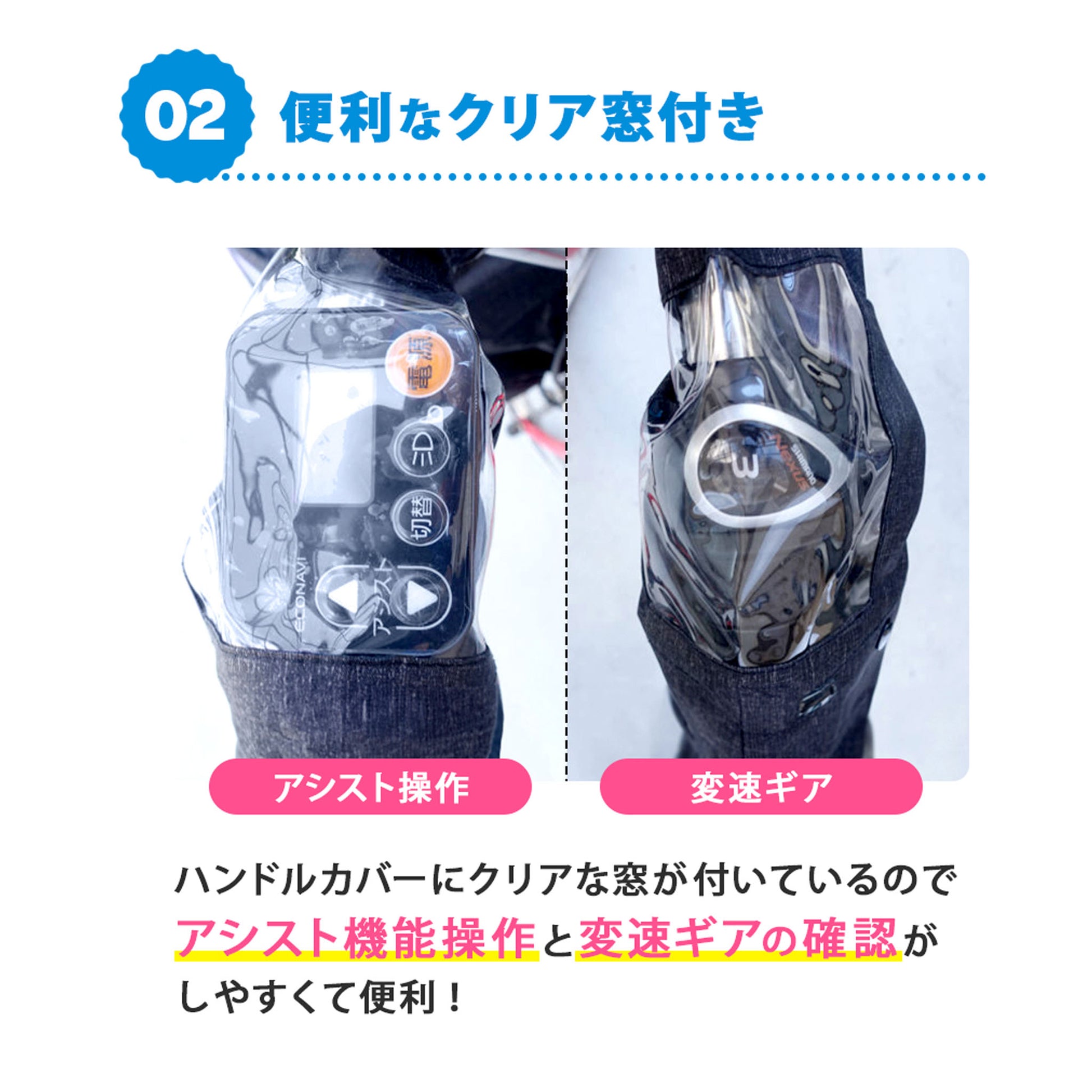 クリアな窓を搭載。変速ギアの確認やアシスト機能操作などの自由に操作が行えます。取り外しもとても簡単です。