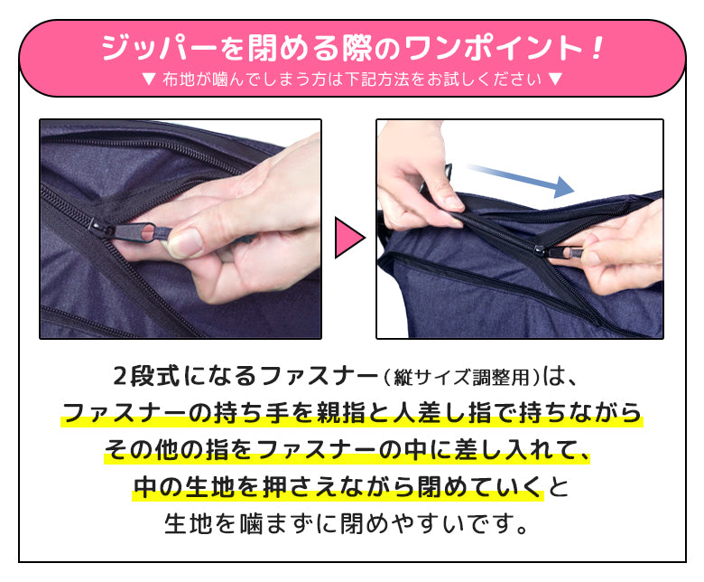 ワンファスナーで容量をアップできるので、リュックや縦型鞄も覆えます。