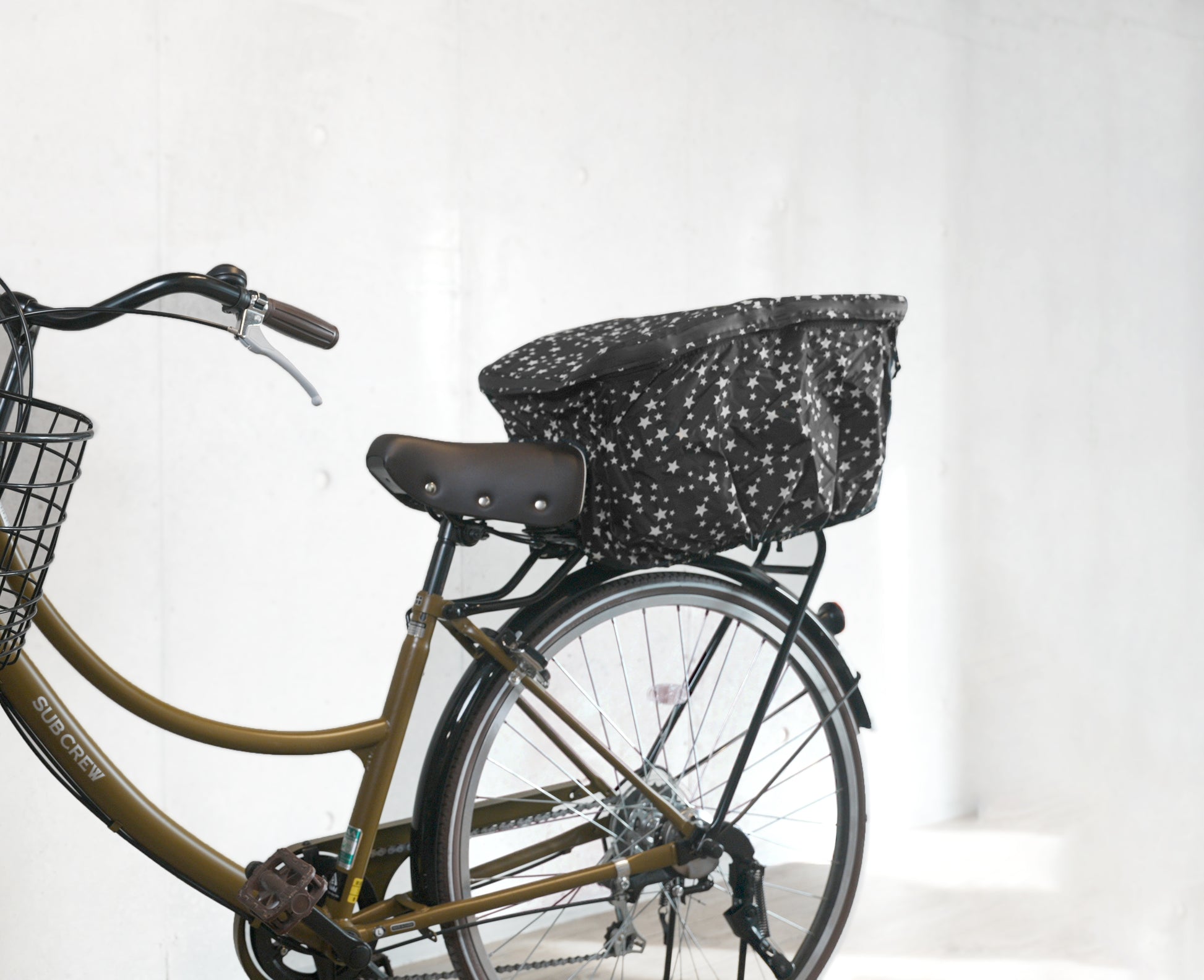 レインウェアの会社 ( 弊社 )が作ったこだわりの自転車用後ろカゴカバー。