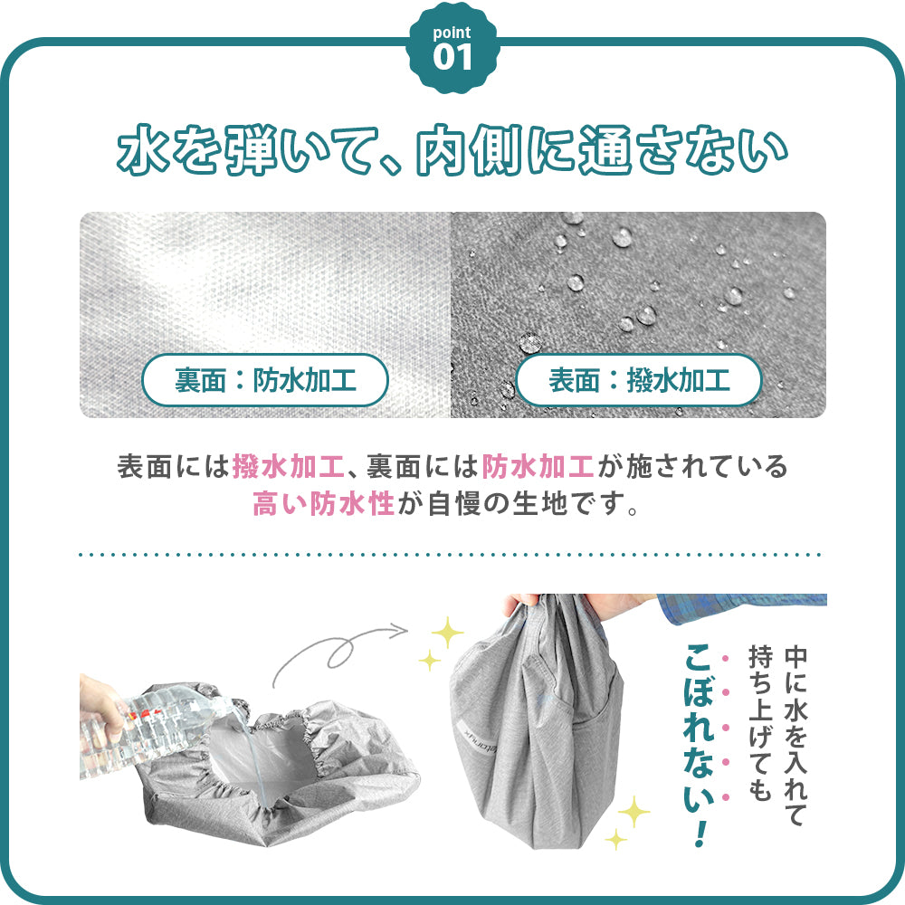 PUラミネート加工&シームテープ加工で防水性抜群で雨から荷物を守ります。